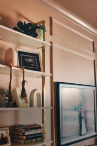 Not everything changed. The built-ins stayed as-is. They still work perfectly and added just enough contrast to ground the new palette. The floating shelves stayed too — they already fit the style we were heading toward, and sometimes the best design decision is not to overthink something that’s already working.