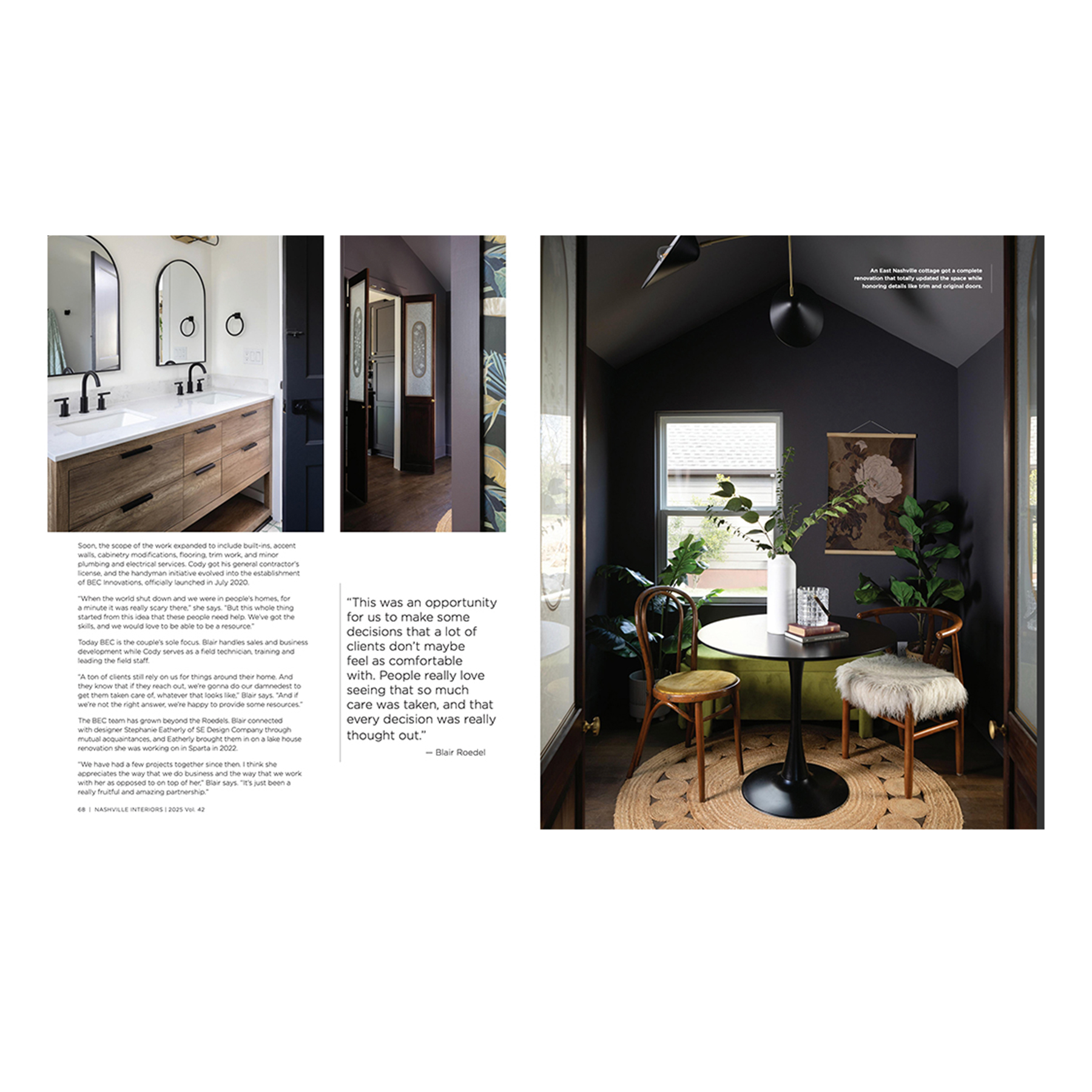 We extend our heartfelt gratitude to the editors and team at Nashville Interiors for this feature. Their dedication to spotlighting local talent and innovative designs plays a significant role in fostering a thriving creative community in Nashville. We also want to thank our clients, partners, and supporters. Your trust and collaboration