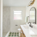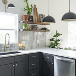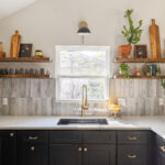 We wanted to create a space that felt both modern, and captured the heart of the neighborhood in which it sits, with elements that complemented the overall vibe of the house. The color palette is a perfect blend of soft, muted tones with bold accents. We chose crisp white cabinetry as a base, offering a clean, airy look. But the real showstopper? The deep, rich arches, black cabinetry, and green tile that anchors the space and brings in a touch of modern sophistication. Paired with brass hardware, the combination feels colorful but never too overwhelming.